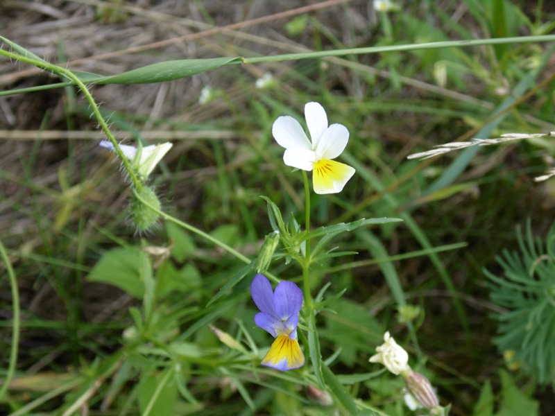 Dość osobliwy był przypadek tego fiołka trójbarwnego - Viola tricolor. obydwa kwiaty są na jednej roślinie