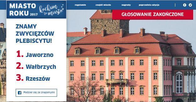 Leżące w województwie śląskim Jaworzno zdobyło aż 23 341 głosów , bezapelacyjnie zyskując tytuł Miasta Roku 2017. Internauci udowodnili, że to właśnie Jaworzno jest według nich najbardziej cenionym i ulubionym miastem w tym roku. Pomogło ogromne wsparcie i zaangażowanie mieszkańców, którzy w komentarzach uzasadnili, dlaczego kochają swoje miasto. Jaworzno doceniono m.in. za: rozwój, przestrzeń, nowoczesność i przede wszystkim naturę.