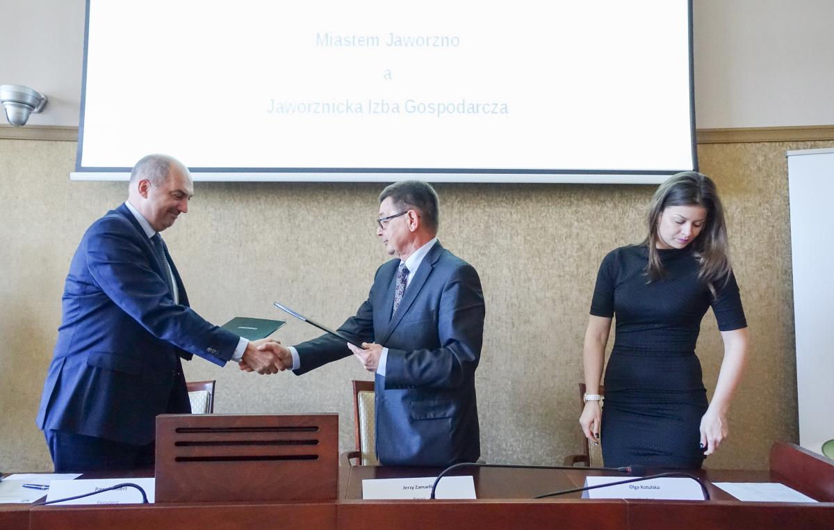 We wtorek w sali obrad Urzędu Miejskiego doszło do podpisania porozumienia. Ze strony Jaworznickiej Izby Gospodarczej podpis na porozumieniu złożyli prezes Jerzy Zamarlik oraz skarbnik Olga Kotulska. W imieniu gminy podpisał się prezydent Paweł Silbert.