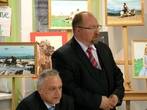 W godzinach popołudniowych wraz z I zastępcą wojewody śląskiego Stanisławem Dąbrową przybyła do Górnośląskiej Wyższej Szkoły Pedagogicznej im. Kardynała Augusta Hlonda w Mysłowicach na otwarte spotkanie PN. „Emeryt/Rencista Dziś i Jutro”. Gości powitali rektor uczelni doc.dr Mirosław Wójcik oraz ubrany w śląski strój ludowy wiceprzewodniczący mysłowickiej Rady Miejskiej Edward Lasok.