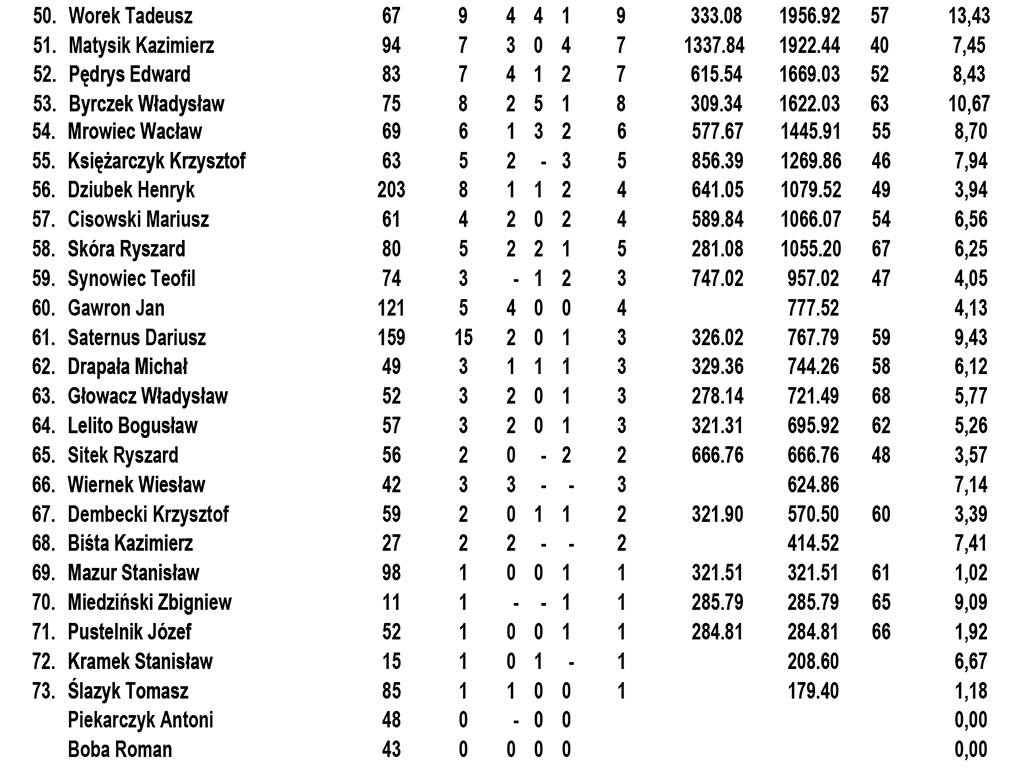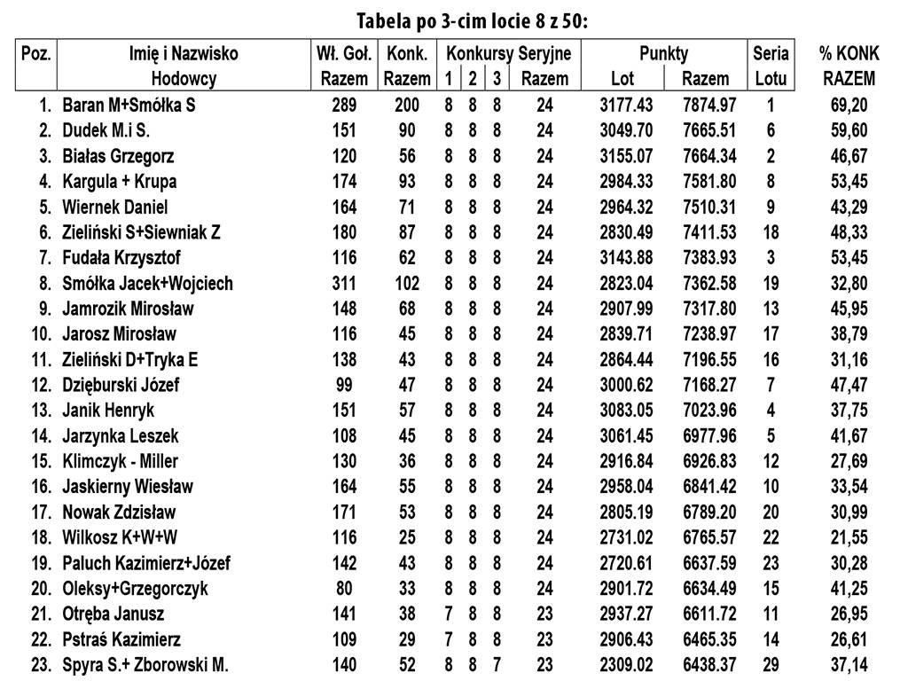 7.Osiadły Jacek        1291,88m/m 8. Baran M+Smółka S     1291,68m/m
