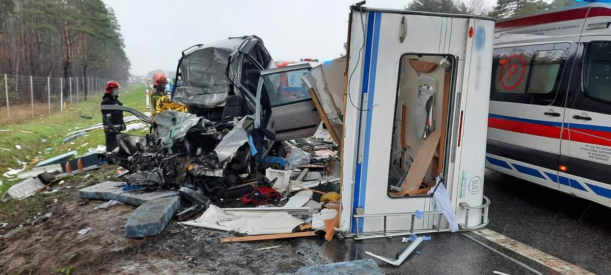 Na drodze S1 Mierzęcicach doszło do dramatycznego karambolu z udziałem pięciu pojazdów: 2 ciężarowe z naczepą, 1 kamper, 1 bus i 1 samochód osobowy. Zniszczenia są olbrzymie. Droga w obu kierunkach jest całkowicie zablokowana.
