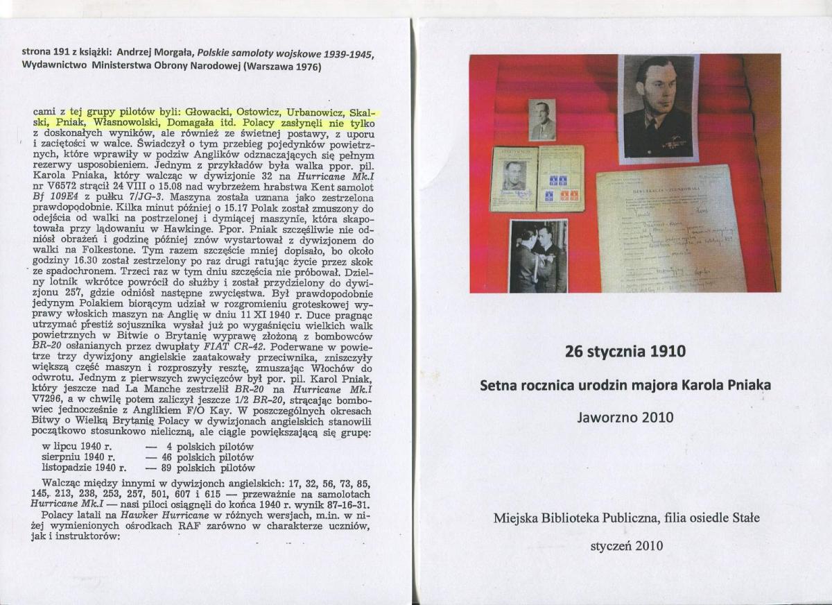 Nie był zapomniany. Książki mojego dzieciństwa, jakie wychodziły w latach 60, 70 odnoszące się do pilotów II wojny światowej zawierały informację o Karolu Pniaku. Dla przykładu wymienię: Bohdan Arct: „Cena życia”, Witold Urbanowicz: „Myśliwcy”, Stanisław Skalski: „Czarne krzyże nad Polską” , Jan Jokiel: „Udział Polaków w bitwie o Anglię”, Eugeniusz Banaszczyk: „W bitwie o Anglię.”