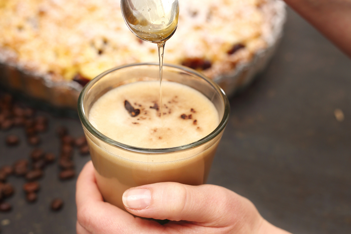 Pyszna i efektowna warstwowa latte będzie jeszcze smaczniejsza z dodatkiem wybranego syropu do kawy. Możemy postawić zarówno na świeże, owocowe warianty, na przykład syrop o smaku i zapachu świeżej szarlotki, jak i na słodkie, nawiązujące do popularnych wypieków syropy cukrowe, między innymi: