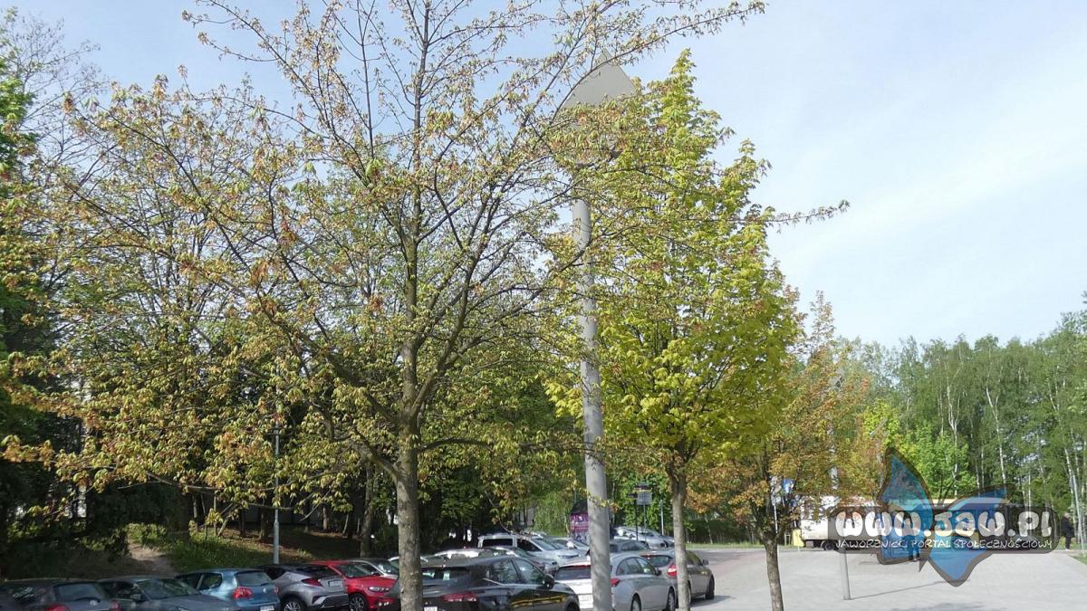 Pod koniec kwietnia drzewa miały już rozwinięte młode liście, a ich korony przybrały zielonoróżowy odcień. Były już po kwitnieniu, ale wciąż można było dostrzec krótkie czerwone szypułki.