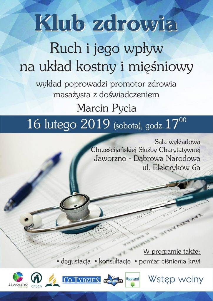 Kolejny wykład, na który zaprasza Klub Zdrowia, odbędzie się 16 lutego. Tym razem wykład zostanie poświęcony układowi kostnemu oraz mięśniowemu i temu jak wpływa na niego ruch.