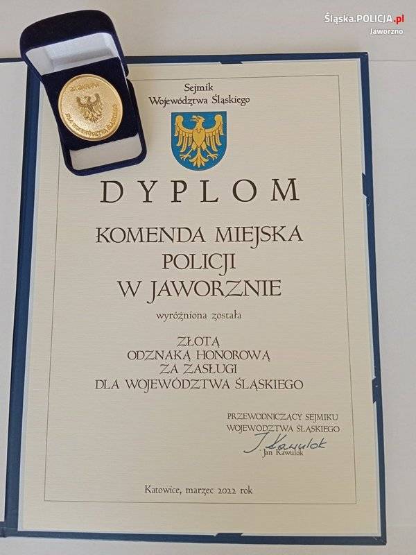 Komenda Miejska Policji w Jaworznie została odznaczona za zasługi dla województwa śląskiego. Dyplom oraz złotą odznakę odebrał Komendant Miejski Policji w Jaworznie mł. insp. dr Piotr Uwijała.