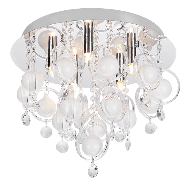 Wdzięczna lampa sufitowa LED Zuma Line 19031-M GRESSA to stylowa propozycja, dzięki której twój dom nabierze luksusowego charakteru. Jej niebanalny design pięknie wzbogaci sypialnianą przestrzeń, dodając jej powabu i elegancji. To oświetlenie LED jest symbolem klasy i luksusu. Kryształki zawieszone na łańcuszkach, na których znalazło się miejsce dla dodatkowych, kulistych elementów, pięknie mienią się w promieniach światła, tworząc tym samym przytulną atmosferę we wnętrzu glamour.