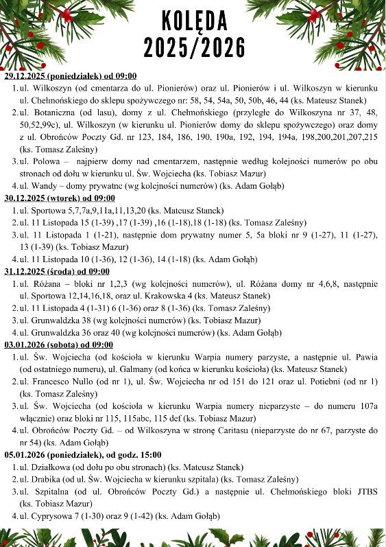 Szczegółowy plan kolędy: