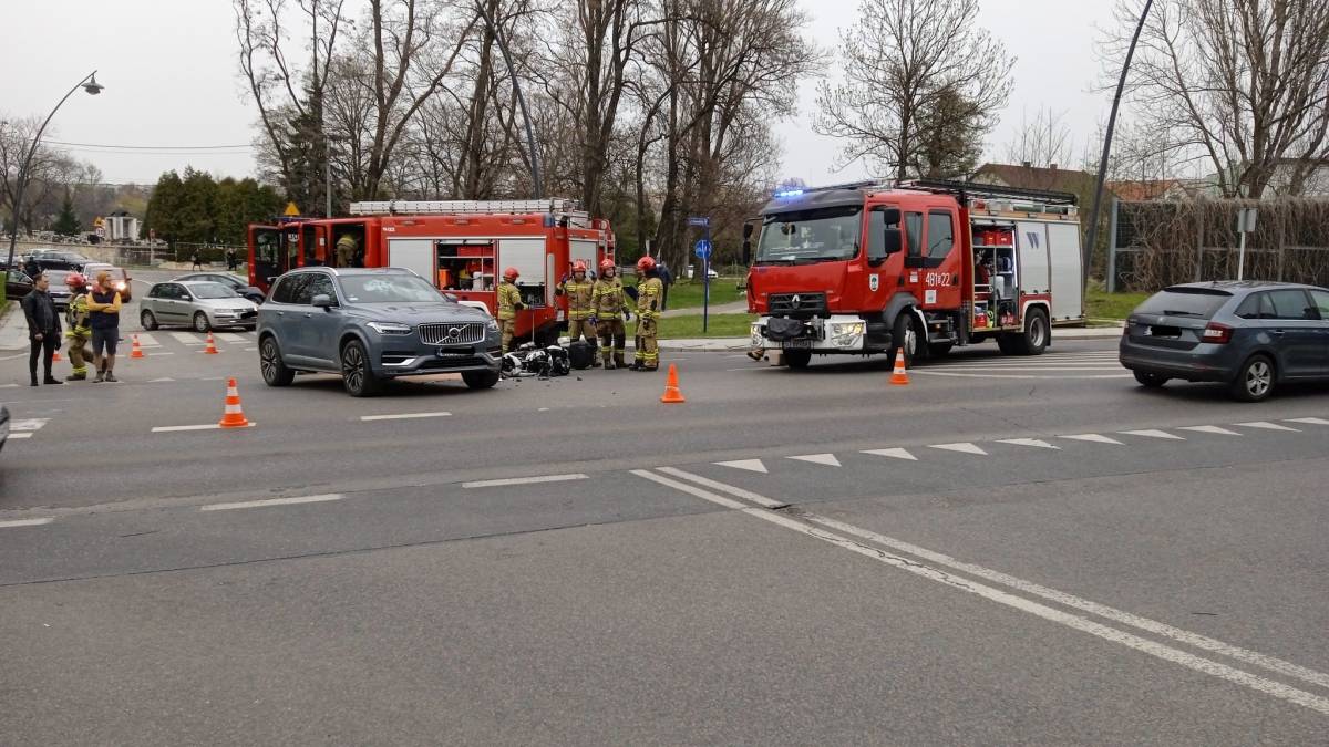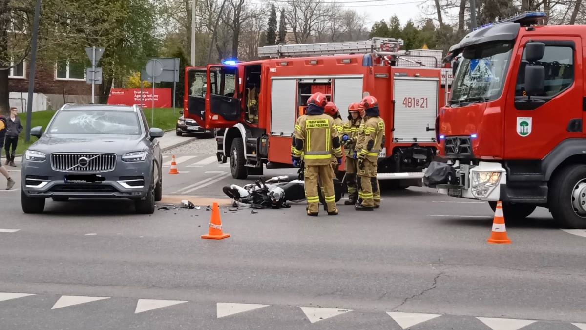 Kolizja motocykla z samochodem osobowym przy ul. Grunwaldzkiej