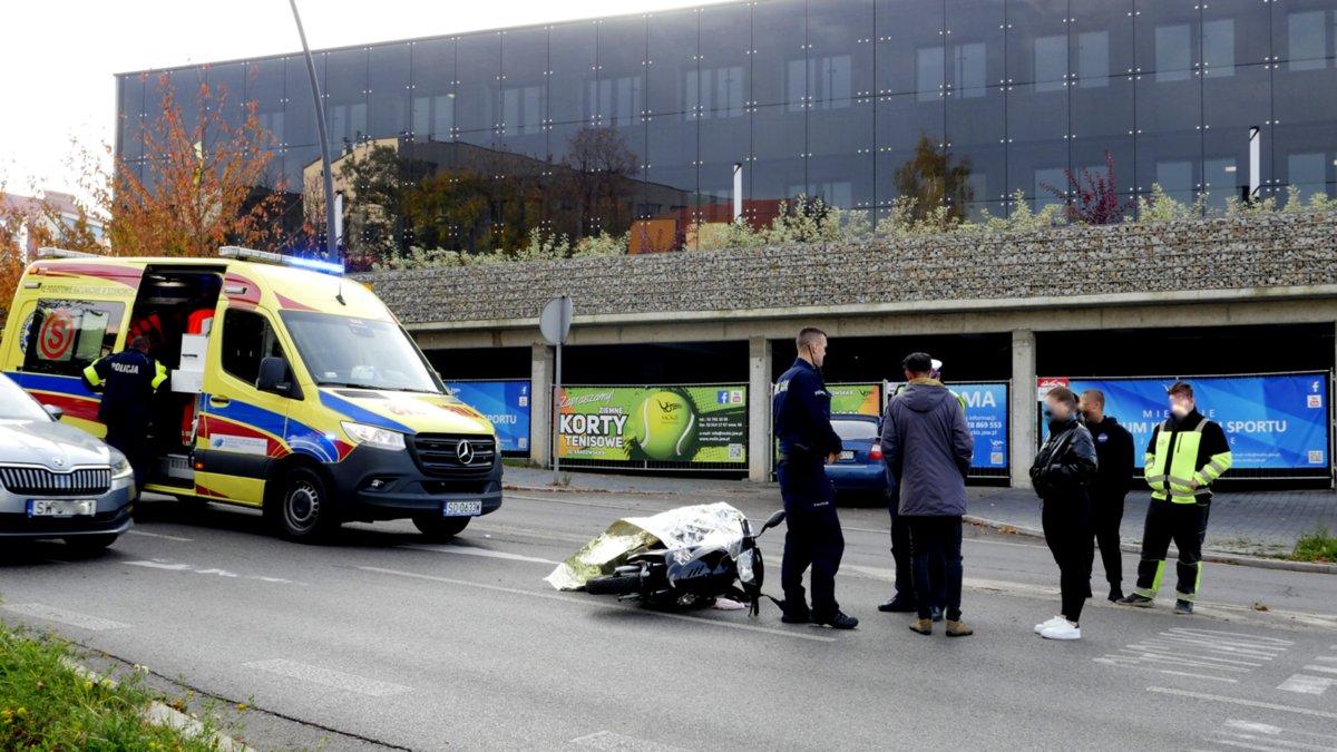 Na miejscu udzielono pomocy medycznej kierowcy jednośladu, a policja wyjaśnia szczegółowe okoliczności zdarzenia.