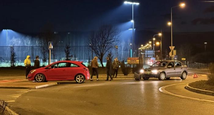 Kolizja dwóch samochodów miała miejsce na rondzie przy stadionie Victoria Jaworzno, w poniedziałek, 23 lutego po godzinie 18:00. W zdarzeniu drogowym brały udział dwa samochody marki Opel - Astra oraz Corsa.