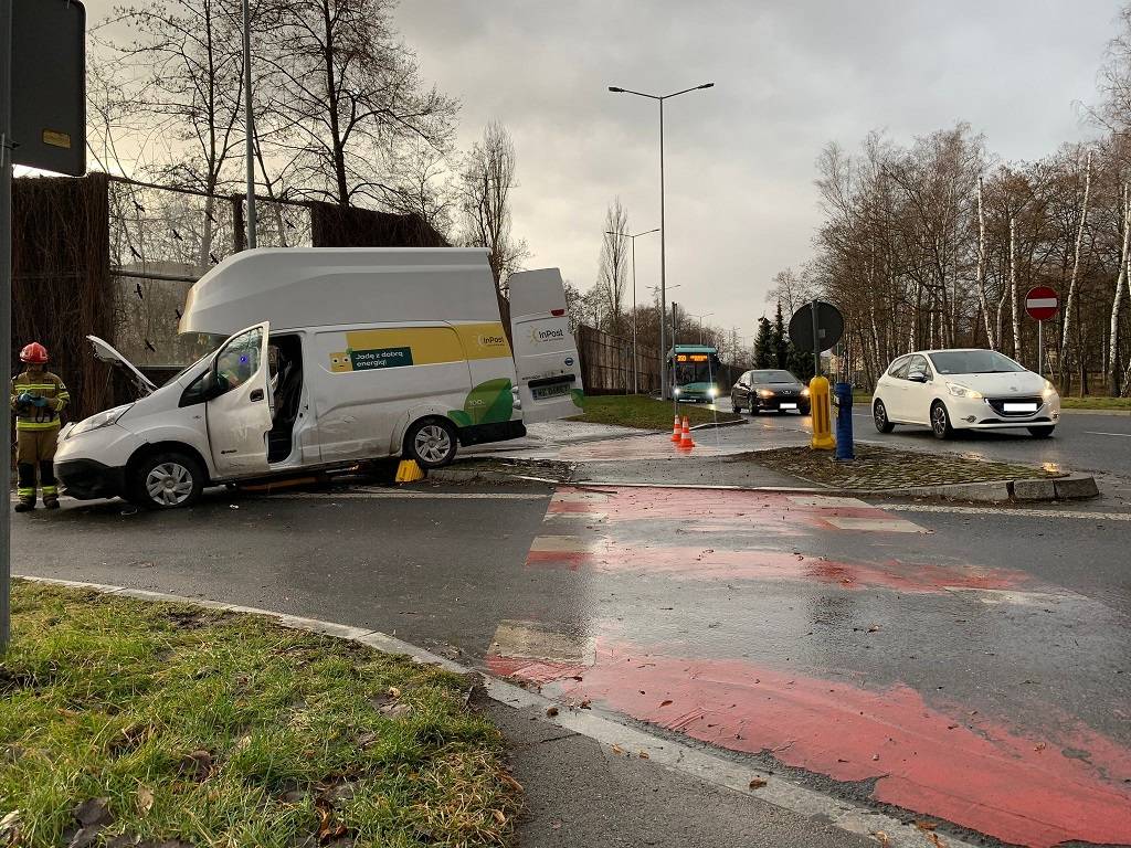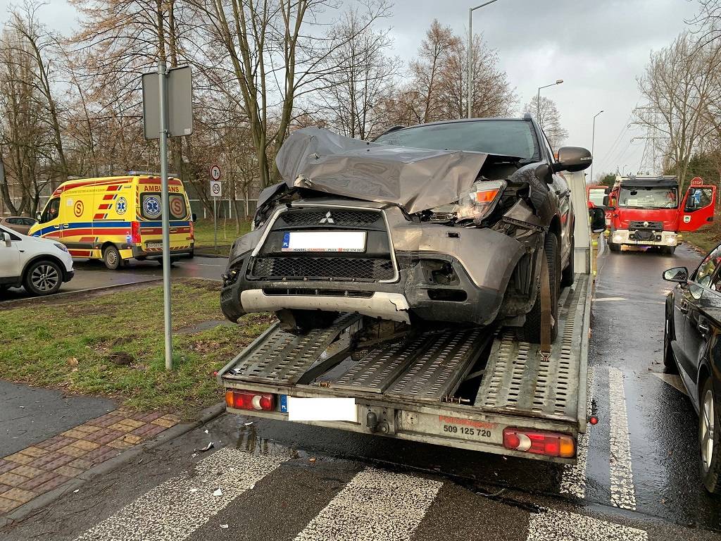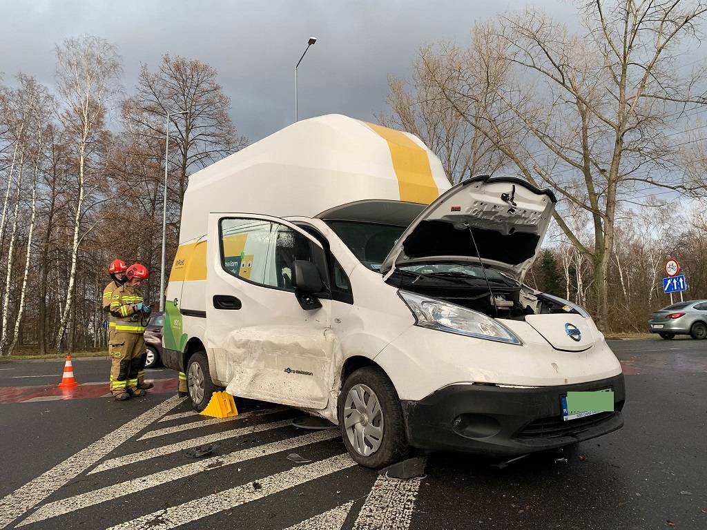 Kolizja na skrzyżowaniu ul. Puszkina i Grunwaldzkiej w Jaworznie. W wyniku zdarzenia poszkodowana została jedna osoba.