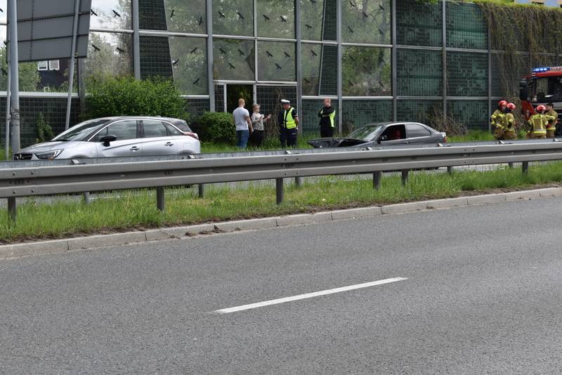 Kolizja drogowa z udziałem dwóch samochodów osobowych na ulicy Grunwaldzkiej w pobliżu Urzędu Skarbowego w Jaworznie.