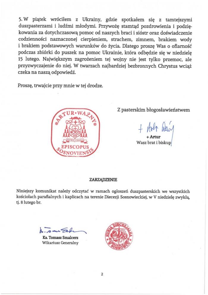 Biskup zapowiedział także skierowanie specjalnego Listu Pasterskiego dotyczącego drogi odnowy Kościoła. Ma on zostać ogłoszony w niedzielę, 15 lutego. W komunikacie biskup podkreślił, że obecny moment jest przede wszystkim czasem obrony godności człowieka, a nie instytucji, oraz wezwał do modlitwy za osoby skrzywdzone.