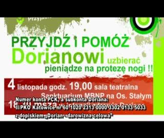 Dorian Krzywoń – trzynastoletni uczeń Gimnazjum nr 5 w Jaworznie jest wesołym, pełnym energii chłopcem pragnącym żyć jak każdy nastolatek. W lipcu 2009 roku wykryto u Doriana raka kości i przeprowadzono dziesięcio-tygodniową chemioterapię. Niestety w listopadzie lekarze zostali zmuszeni amputować chłopcu lewą nogę w okolicy podudzia. Po 14 miesiącach, w lutym bieżącego roku przeprowadzono u Doriana torakotomię (usunięcie guza przerzutowego lewego płuca), a w czerwcu w związku pojawieniem się przerzutów usunięto chłopcu całą lewą nogę z wyłuszczeniem miednicy.