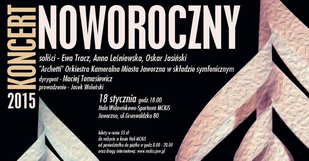 Na powitanie 2015 roku wystąpią soliści: Ewa Tracz, Anna Leśniewska, Oskar Jasiński oraz Orkiestra Kameralna Miasta Jaworzna „Archetti” w składzie symfonicznym pod dyrekcją Macieja Tomasiewicza. W programie będzie można usłyszeć najpiękniejsze arie z oper, operetek i musicali, pieśni oraz utwory karnawałowe. Koncert odbędzie się 18 stycznia o godzinie 18:00 w Hali Widowiskowo-Sportowej w centrum miasta.