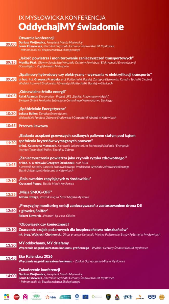 Wśród prelegentów znaleźli się przedstawiciele m.in.: Górnośląsko-Zagłębiowskiej Metropolii, Wojewódzkiego Funduszu Ochrony Środowiska i Gospodarki Wodnej w Katowicach, Politechniki Śląskiej, Instytutu Technologii Paliw i Energii w Zabrzu, Śląskiego Uniwersytetu Medycznego, Komendy Miejskiej PSP w Mysłowicach, Związku Gmin i Powiatów Subregionu Centralnego Województwa Śląskiego oraz Straży Miejskiej w Mysłowicach. Patronat nad wydarzeniem objął WFOŚiGW w Katowicach.