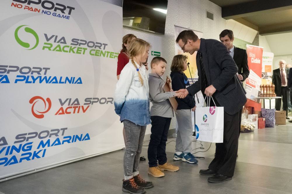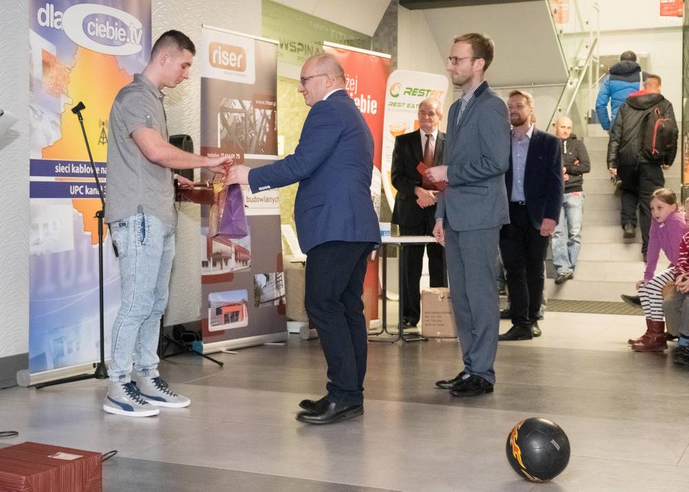Igor Musiał odbiera nagrodę od Grzegorza Gębskiego z MCKiS