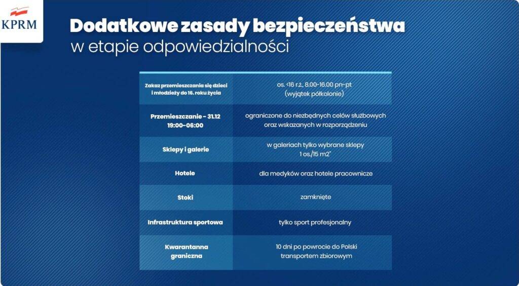 Zamknięte zostaną stoki narciarskie. Hotele będą nieczynne również dla osób podróżujących służbowo. Osoby przyjeżdżające do Polski transportem zorganizowanym będą objęte obowiązkową 10-dniową kwarantanną.