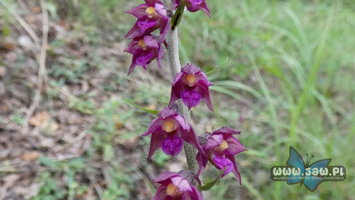 Roślina szczególnie zwraca uwagę w okresie kwitnienia, który przypada od czerwca do sierpnia. Na szczytach łodyg pojawiają się liczne, intensywnie wybarwione kwiaty o purpurowych płatkach korony. Największy z nich, typowy dla storczyków, nazywany jest warżką. Ważnym elementem budowy jest żółty prętosłup, powstający z zespolonych pręcików i słupka.