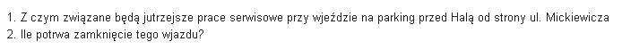 Strasznie nas dziwi fakt, że nawet taka drobnostka jak uzyskanie informacji o pracy serwisowej wjazdu na parking, może być problemem nie do pokonania lub wręcz informacją z serii "Top Secret".