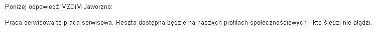 Najbardziej jednak rozczuliła nas końcówka odpowiedź, wedle której jeżeli ktoś z Państwa nie śledzi mediów społecznościowych MZDiMu, to po prostu nie dowie się o zaistniałej sytuacji.