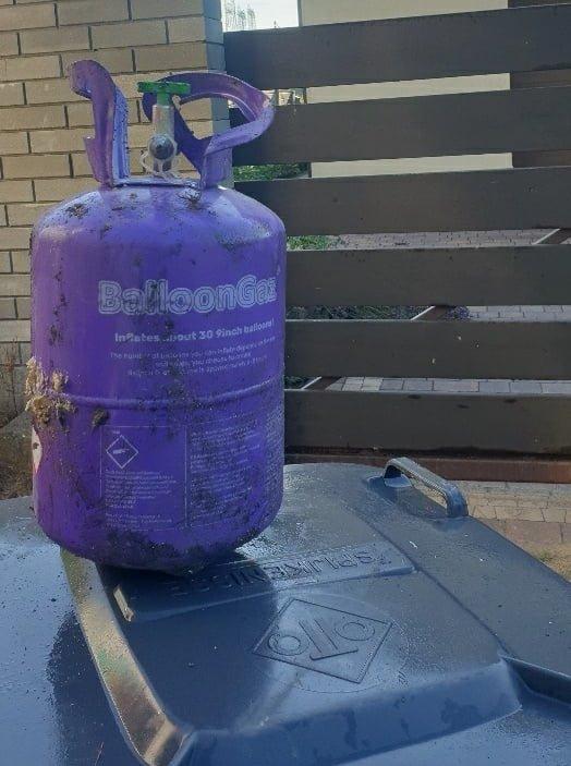Ktoś bardzo nieodpowiedzialny umieścił butlę z helem w pojemniku na odpady zmieszane