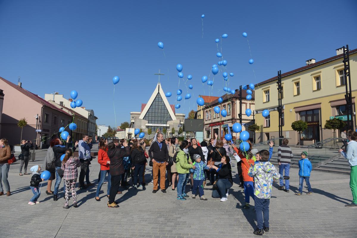 Po podsumowaniu projektu rodzice wraz z dziećmi udali się liczną grupą na jaworznicki rynek, gdzie w powietrze poszybowało kilkadziesiąt niebieskich balonów.