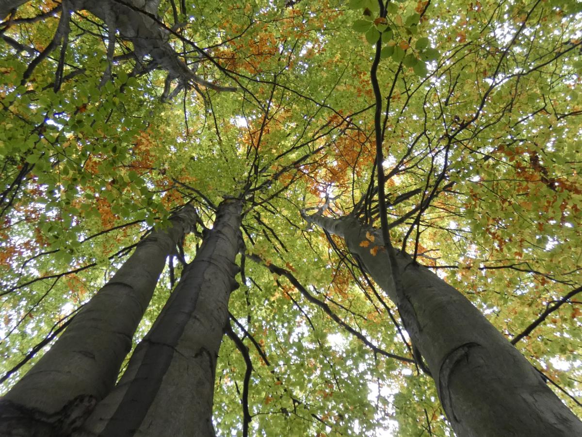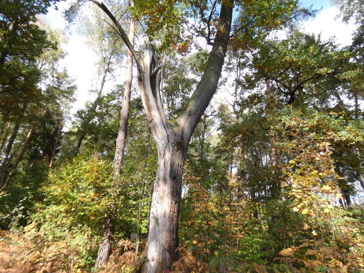 W lesie w osi dróg, którymi przemieszczają się wędrowcy, wzrok przyciągają liczne okazale dęby szypułkowe. Lokalnie znajdują się płaty, w których dominują młode drzewa tego gatunku. Najstarsze z nich są w wieku około stu lat. Część drzew jest bardzo sterana życiem. Z osobliwości gdzieś tak w połowie trasy natrafiliśmy na półżywe drzewo tego gatunku. Kolejną grupę staruszków tworzą buki pospolite. Wiele z nich ma więcej niż sto lat i to one powinny być tutaj szczególnie chronione. Warto jeszcze odnotować klony zwyczajne, które teraz przebarwiając się, dają efekt złotej polskiej jesieni. A Most Cygański obejrzycie sobie w filmie oraz tryptyku zdjęć na Wędrówkach z Grzegorzkiem.