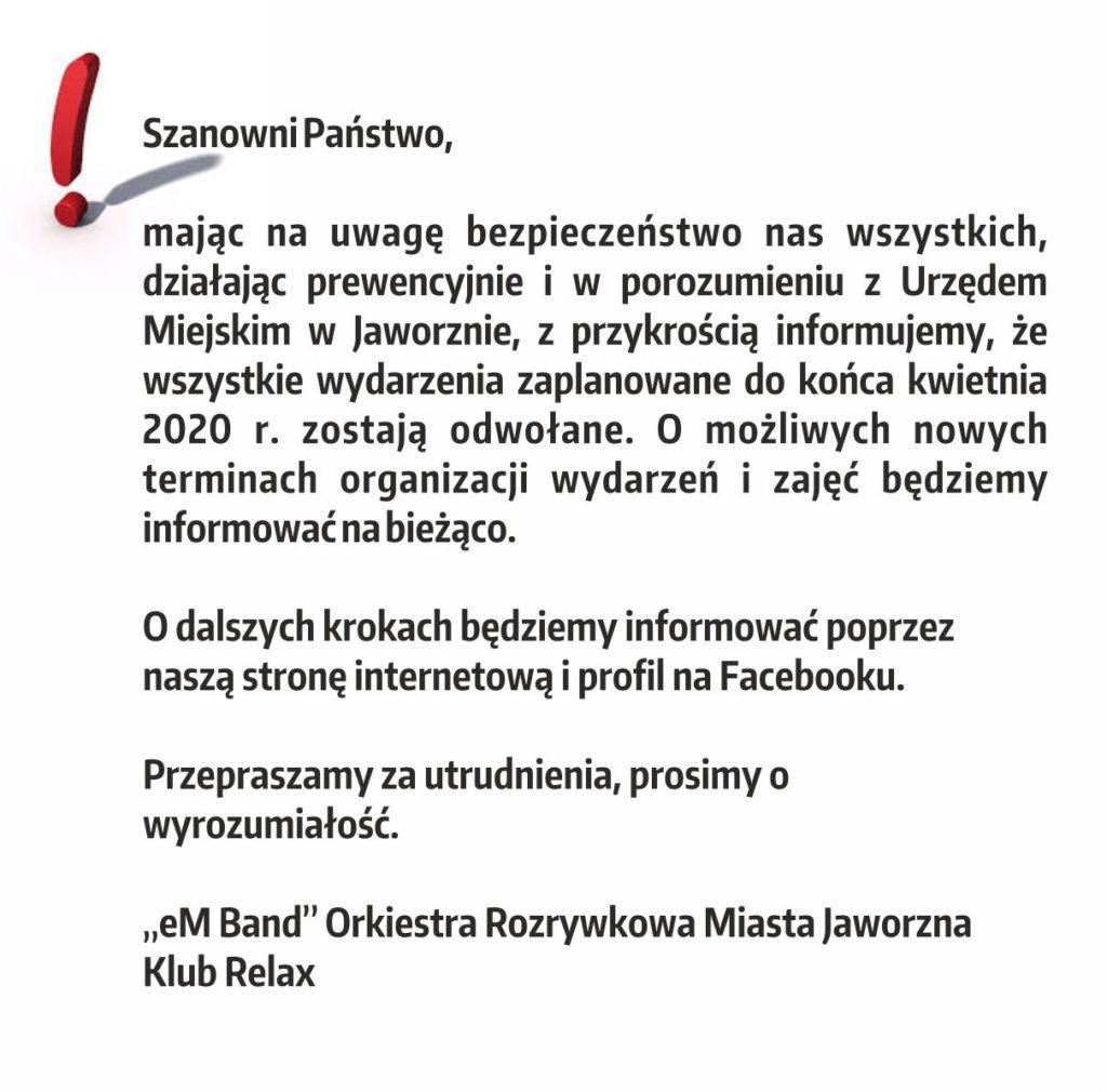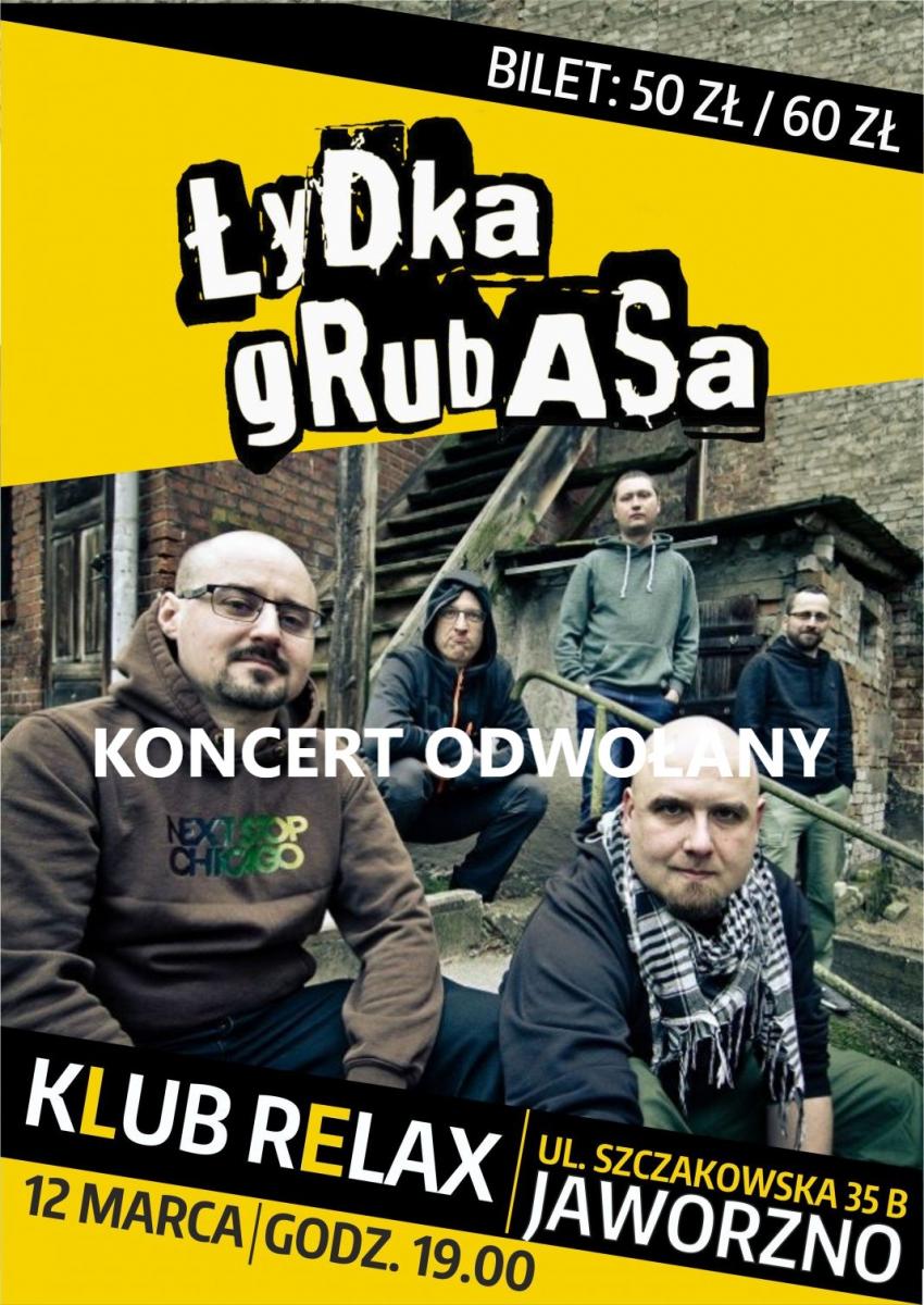 Jutrzejszy koncert, który miał się odbyć w Klubie Relax odwołany. Łydka Grubasa i Zenek Kaputasa nie wystąpią dla jaworznian. Nie tak dawno proponowaliśmy dla was wejściówki na koncert w Klubie Relax. W związku z bezpieczeństwem w porozumieniu z Urzędem Miejskim w Jaworznie Klub Relax odwołuje wszystkie imprezy do końca kwietnia.