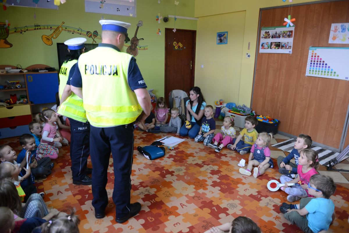 Dzieci z przedszkola „Mali Artyści” doskonale wiedzą już jak zadbać o swoje bezpieczeństwo na drodze. We wtorek w placówce gościli policjanci z Komendy Miejskiej Policji w Jaworznie, którzy opowiadali dzieciom o ich pracy oraz zasadach bezpieczeństwa. Dzieci, jak się okazało, posiadają już całkiem sporą wiedzę w tej dziedzinie. Wiedzą jak należy przechodzić przez przejście dla pieszych oraz jak działa sygnalizacja świetlna. Dodatkowo maluchy miały możliwość zadać pytania funkcjonariuszom oraz zobaczyć co kryje wnętrze samochodu policyjnego.