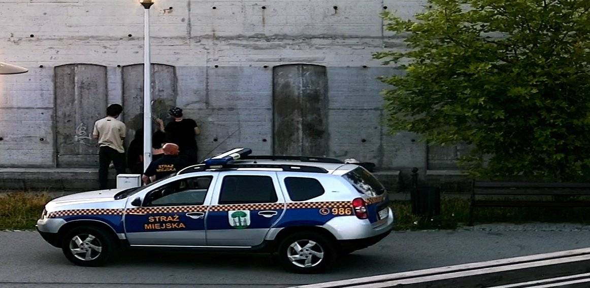 Nastolatkowie malowali graffiti na jaworznickich Plantach i zostali złapani na gorącym uczynku. Czujne oko dyżurnego Straży Miejskiej wyłapało ten akt wandalizmu za pomocą monitoringu miasta, a patrol strażników złapał sprawców w kilka chwil.