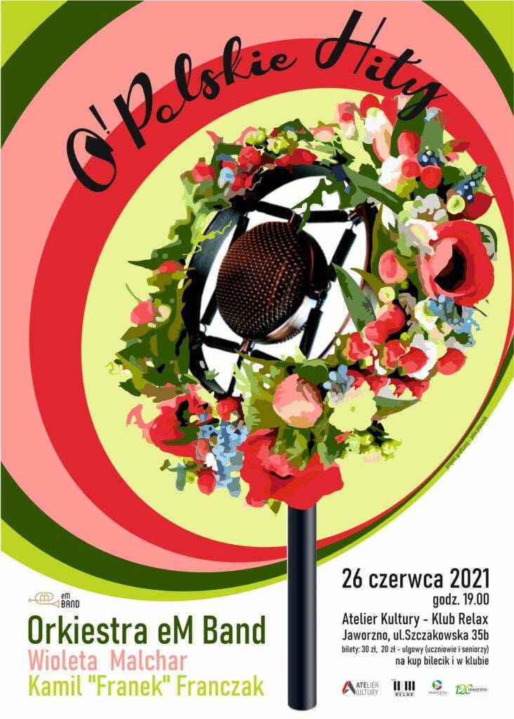 Zapraszamy na wakacyjny koncert O"Polskie Hity!!! 26.06. o godz. 19.00 w klubie Relax, Orkiestra eM Band zagra niezapomniane przeboje polskiej piosenki w wykonaniu fascynujących wokalistów Wioli Malchar i Kamila "Franka" Franczaka.