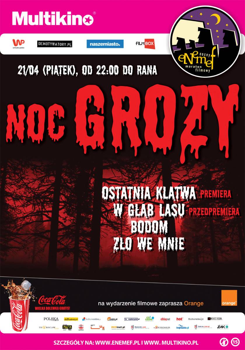 Zapraszamy na nasz profil facebookowy https://www.facebook.com/jawpl/, gdzie czeka na Państwa konkurs, w którym do wygrania jest podwójna wejściówka na ENEMEF: Noc Grozy. Początek seansu w piątek (21 kwietnia) o godzinie 22:00. Przewidywany koniec seansu ok. 5:00 rano.