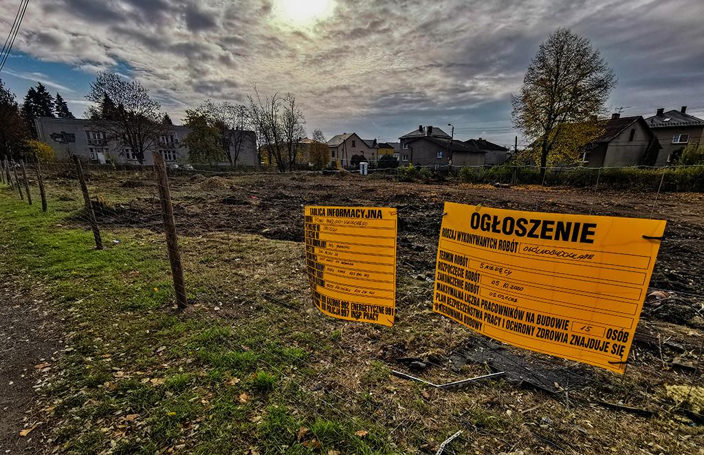 Na tablicy informacyjnej widnieje planowana data zakończenia budowy: 5 marca 2021. Cały budynek handlowo-usługowy ma powstać w zaledwie 5 miesięcy.
