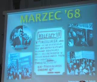 Dr Jarosław Neja z IPN mówił nie tylko o samym marcu, ale także o wydarzeniach go poprzedzających. Oprócz wykładu młodzież, która wzięła udział w konferencji historycznej zobaczyła dwa filmy dokumentalne pt. „Inne spojrzenie na marzec” i „Taśmy Marca” "68”.