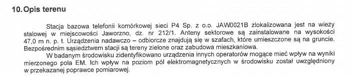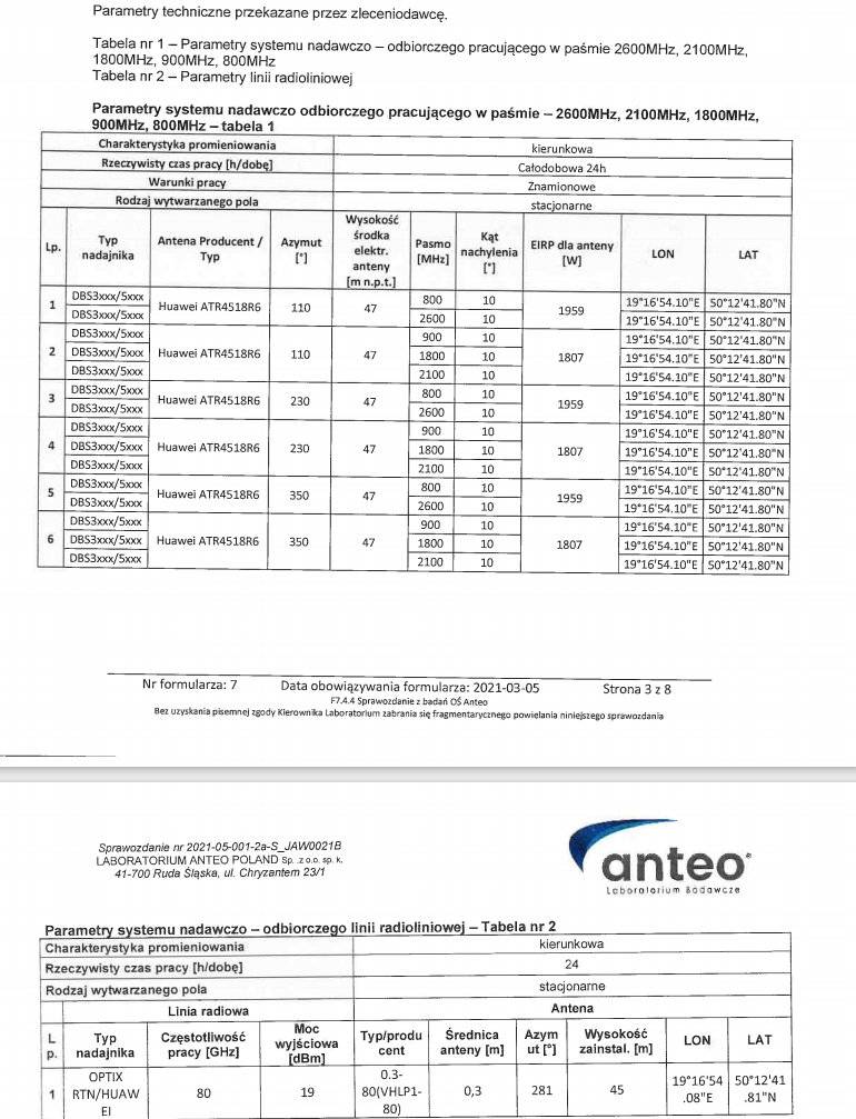Przedstawione sprawozdanie zawiera informacje o badaniu pola elektromagnetycznego w otoczeniu urządzeń. Wszystkie zgłoszone parametry są w normie.