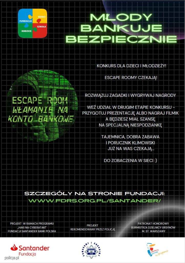 Projekt „MBB czyli Młody Bankuje Bezpiecznie” realizowany przez Fundację Dzieci Rodzice Szkoła (FDRS) (www.fdrs.org.pl) skierowany jest głównie do dzieci i młodzieży, ale także ich rodziców i dziadków. Poprzez edukację dzieci chcemy edukować dorosłych. To dzieci mają być „przewodnikami” po bezpiecznym „świecie” bankowości elektronicznej dla swoich dziadków oraz rodziców. Jego główną zaletą jest przystępny i lekki sposób przekazywania wiedzy poprzez wirtualne escape roomy, w których uczestnik, rozwiązując quizy i zagadki związane z cyberbezpieczeństwem, nabywa potrzebną wiedzę i wykształca nawyki, które mogą pomóc ustrzec się przed narastającą plagą oszustw i wyłudzeń w wirtualnym świecie bankowości i handlu internetowego. Escape roomy i quizy uzupełnione są tradycyjnymi materiałami edukacyjnymi dostępnymi online na stronie fundacji. Całość dopełniają dwa konkursy z ciekawymi nagrodami rzeczowymi dla uczestników.