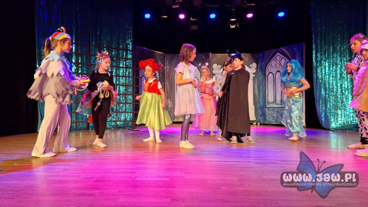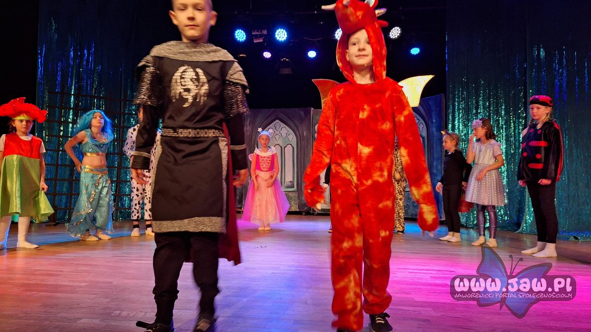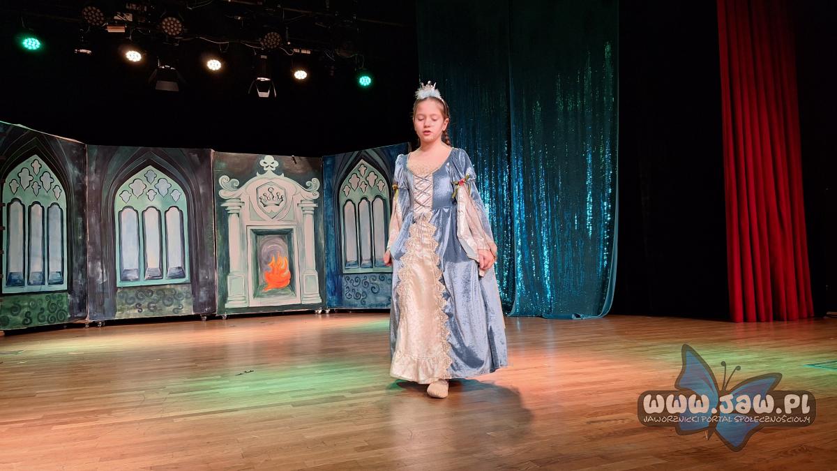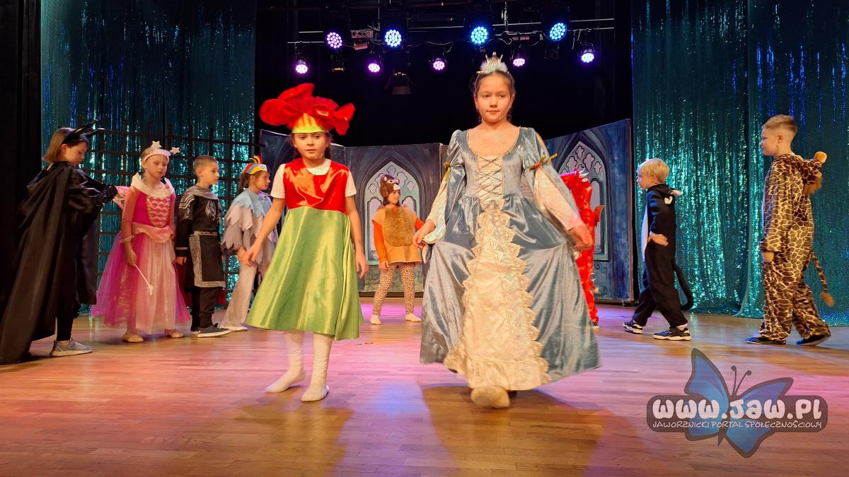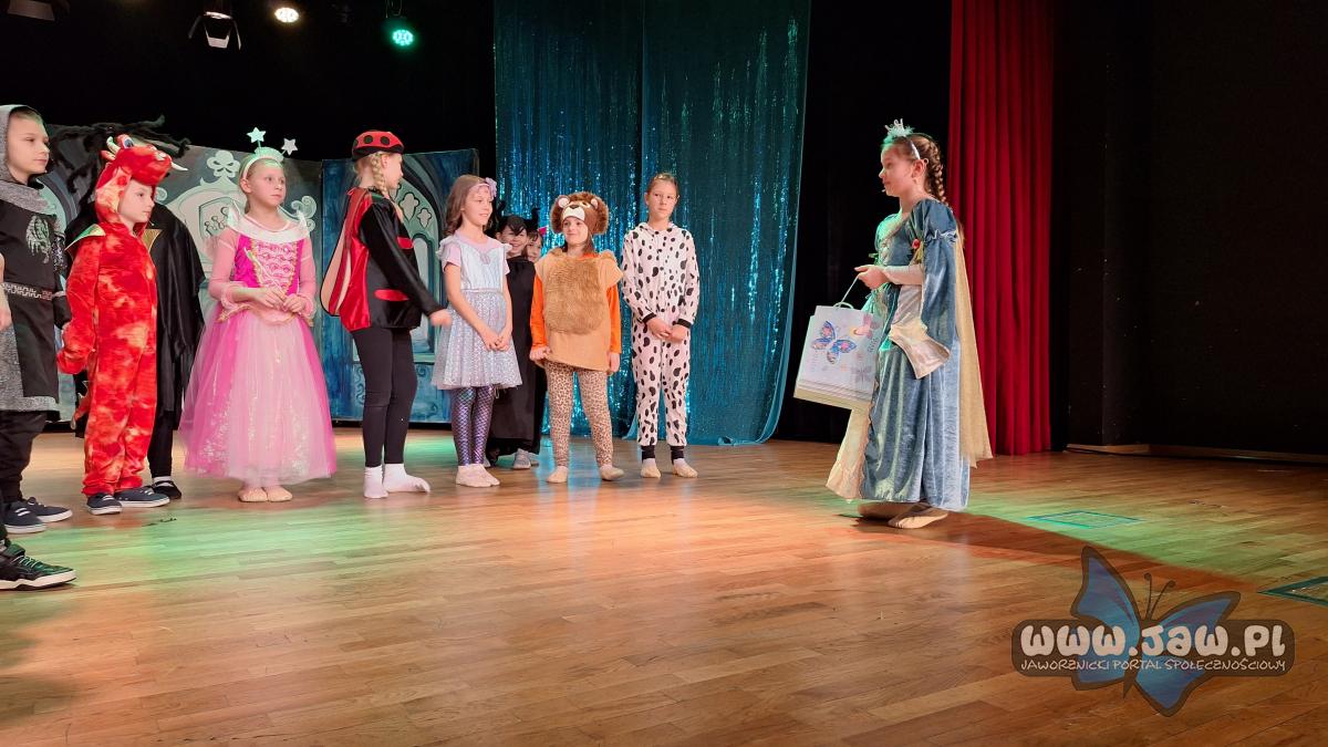 W „Prezencie dla Królewny” zaprezentowało się 17 małych aktorów z grupy młodszej. To muzyczna bajka o królewnie Esmeraldzie, która ma wszystko czego zapragnie, ale pomyślała, że w prezencie urodzinowym chciałaby otrzymać najzwyklejszą skakankę. I tu, jak mawiają, „zaczęły się schody”. Trzeba było przemierzyć wzdłuż i wszerz całe królestwo, pokonać groźnego smoka i złą Królową. Ale jak to w bajkach bywa wszystko skończyło się dobrze. Esmeralda otrzymała skakankę, co ją niebywale ucieszyło.