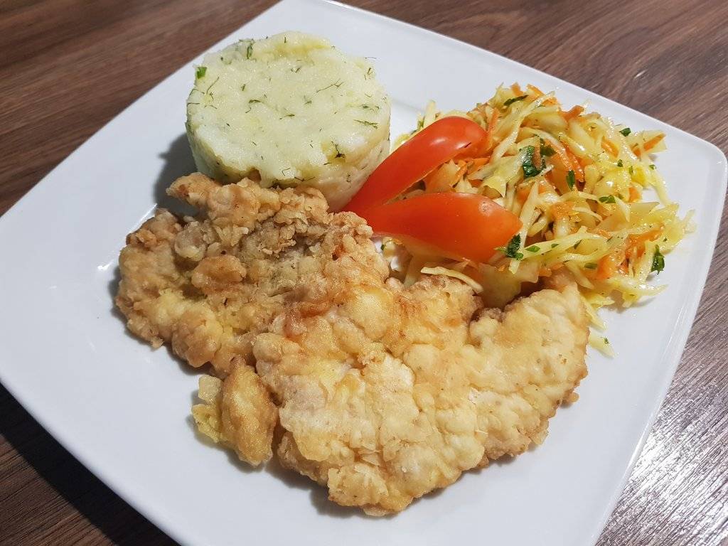 Eskalopki drobiowe z purée ziemniaczanym i surówką