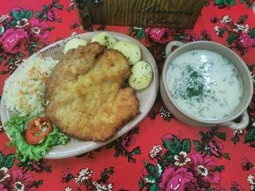 Kotlet schabowy, ziemniaki, surówka