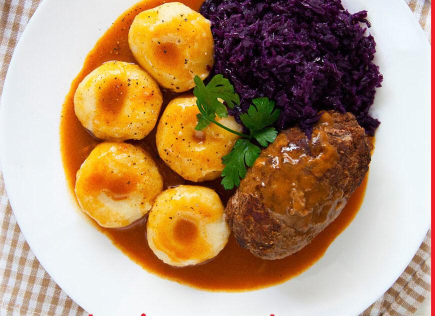 Rolada w sosie własnym z kluskami śląskimi.