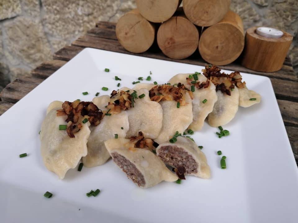 Pierogi z kaszanką, cebulką i szczypiorkiem
