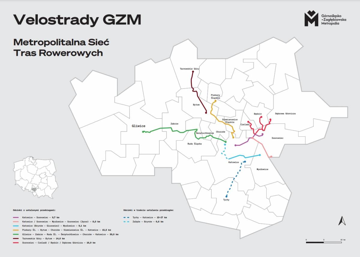Drogi będą przebiegać przez 11 miast i gmin Metropolii: Będzin, Chorzów, Czeladź, Dąbrowa Górnicza, Gliwice, Katowice, Mysłowice, Ruda Śląska, Sosnowiec, Świętochłowice, Zabrze.