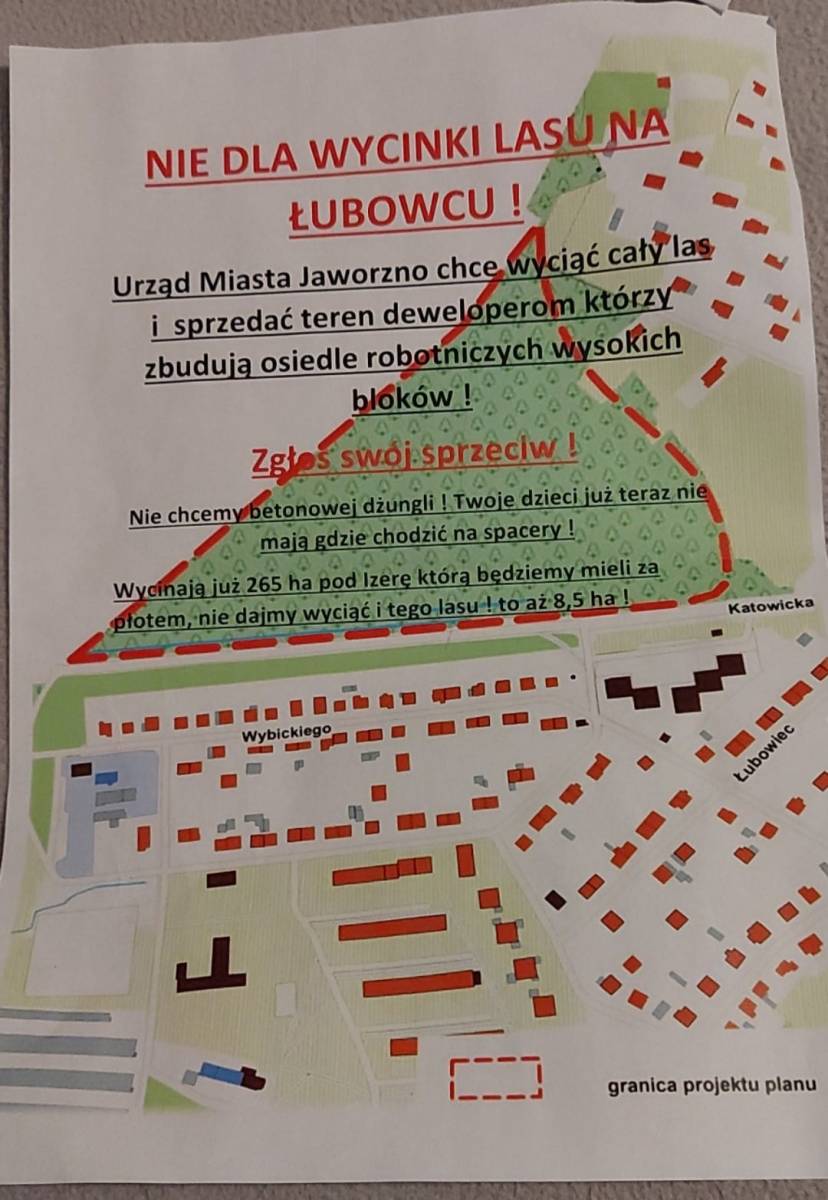 Na facebookowej grupie Łubowiec pojawiła się ulotka wzywająca do sprzeciwu przeciwko wycince kolejnych hektarów lasu w Jaworznie.