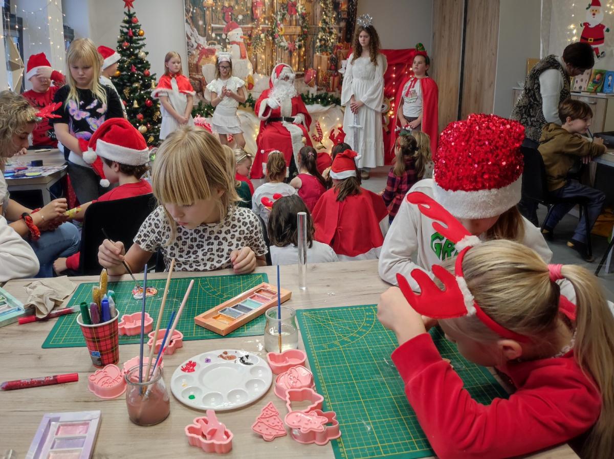 W skupieniu pod czujnym okiem artystycznej rzemieślniczki Beaty powstawały gliniane zawieszki na choinkę ręcznie malowane przez najmłodszych rękodzielników. Wizażystka Agata wyczarowywała pędzlem świąteczne wzory na dziecięcych twarzach. Bibliofilka Aneta przygotowała rozmaite zagadki, rebusy i zadania graficzne.