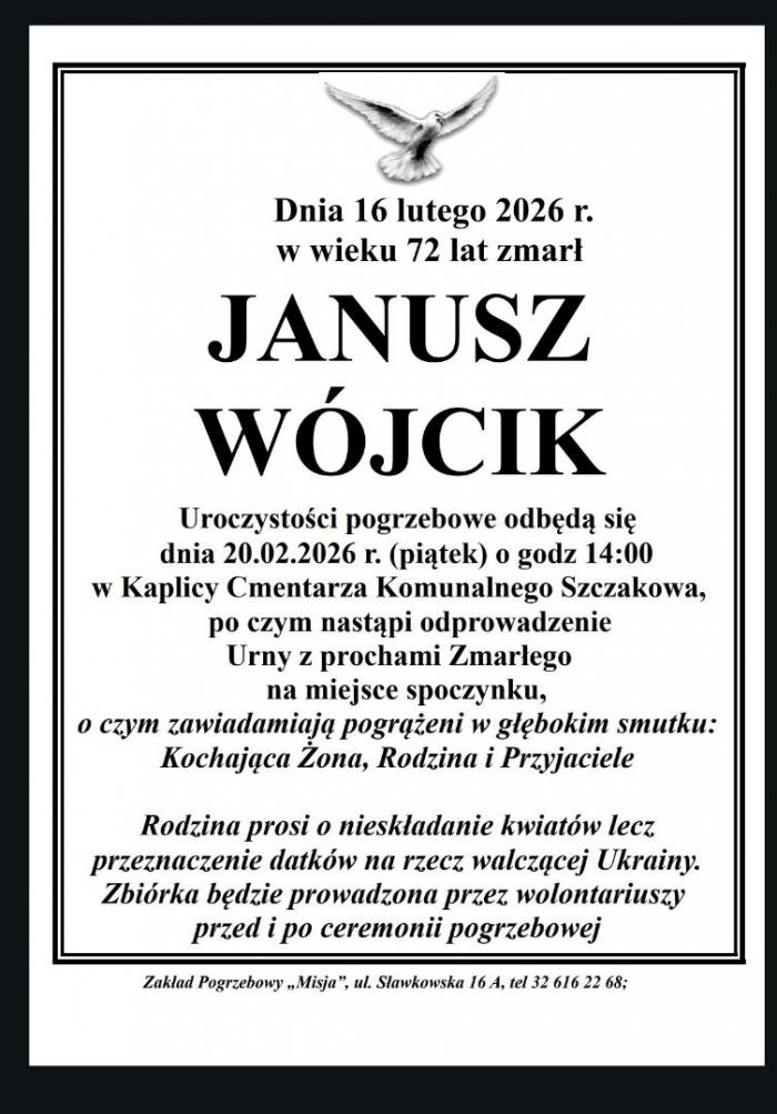 We wtorek 17 lutego zadzwoniła do mnie Ewa Wójcik. Powiedziala: „W poniedziałek umarł Janusz”. Słowa bolesne. Szokujące ostatecznością. Nic nic się tu nie zaradzi. W tym tragicznym dla niej czasie myślałam o niej: jak ona będzie dalej żyć bez Janusza? Odkąd ich pamiętam szli przez życie razem. Tak prawdziwie wytrwale w miłości i przyjaźni. Teraz pozostanie pamięć przeżytych chwil. Przecież mimo wszystko: „Miłość żyć będzie dalej”. Nie umiera.