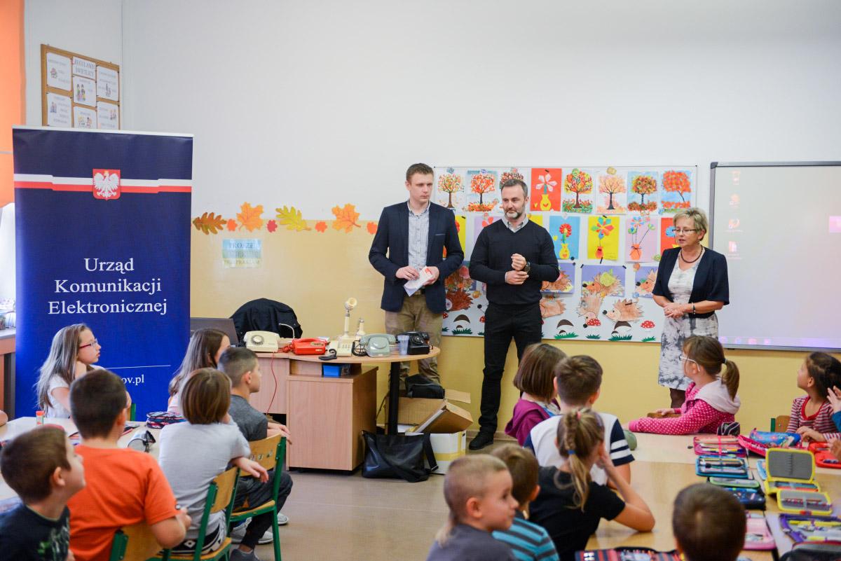 W lekcji wzięli udział uczniowie klas 2b i 3d. Na początek mogli posłuchać krótkiej lekcji historii na temat telefonów. Prowadzący zaprezentowali stare telefony z tarczą numerową i opowiadali jak telefonia zmieniała się przez lata. W końcu przeszli do najważniejszych zagadnień tego dnia, czyli zagrożeń jakie niesie ze sobą korzystanie ze smartfonów. Przestrzegali przed wysyłaniem SMS"ów pod nieznane numery, które na przykład informują nas o wygraniu dużej kwoty pieniędzy. Mówiono również o zachowaniu ostrożności podczas grania w gry, które oferują wirtualne zakupy. Zagrożeń jest naprawdę wiele i mogą nas sporo kosztować. Jak mówi pani Krystyna Banasik zgłaszają się do niej często mieszkańcy, którzy otrzymali duże rachunki telefoniczne, często przez swoją nieuwagę.