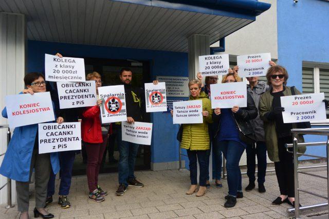 Gdy przewodniczący rady nadzorczej odczytywał na konferencji oświadczenie, w którym „pudrował” sytuację w PGK, przed siedzibą spółki oburzeni mieszkańcy Zamościa stanęli z transparentami: „Koniec kolesiostwa”, „Obiecanki cacanki prezydenta PiS”, „Kolega z klasy – 20 000 zł miesięcznie” czy „Tańszy zarząd. Tańsza woda. Tańsze śmieci”. Banery oddawały nastroje panujące w mieście i wśród załogi PGK po publikacji tekstów, w których ujawniliśmy – jak napisał w doniesieniu złożonym do prokuratury jeszcze we wrześniu Franciszek Josik, były wieloletni prezes spółki – „przekręty podczas przetargów, jakich dopuścił się zarząd”.